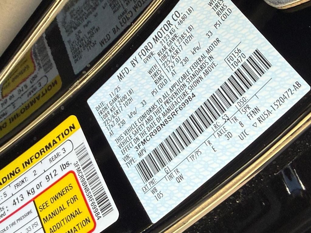 Equipment Group 200A: 17" Carbonized Gray-Painted Aluminum Wheel; Cloth with Easy-To-clean Front Bucket Seats; 8-Speed Automatic Transmission; 225/65R17 102H All Season BSW Tires; AM/FM Stereo; 1.5L EcoBoost Engine. **Equipment listed is based on original vehicle build and subject to change. Please confirm the accuracy of the included equipment by calling the dealer prior to purchase.**