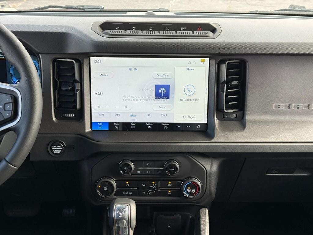 This 2025 Ford Bronco comes equipped with Android Auto for seamless smartphone integration on the road. This vehicle is pure luxury with a heated steering wheel. Apple CarPlay: Seamless smartphone integration for the Ford Bronco - stay connected and entertained on the go! Never get into a cold vehicle again with the remote start feature on this unit. An off-road package is equipped on this model. Protect this vehicle from unwanted accidents with a cutting edge backup camera system. Bluetooth® technology is built into this unit, keeping your hands on the steering wheel and your focus on the road. This model has four wheel drive capabilities. This vehicle features elegant lines colored with a long lasting sand colored finish. It has a V6, 2.7L high output engine. The fog lights cut through the weather so you can see what's ahead. The high efficiency automatic transmission shifts smoothly and allows you to relax while driving.