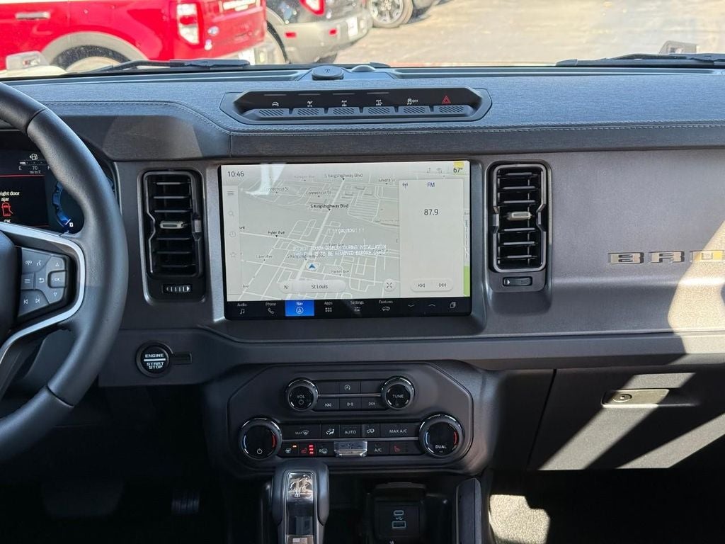 This Ford Bronco's Cross-Traffic Alert: Safeguarding you from unexpected traffic when reversing. Start it from inside with remote start. The leather seats in this vehicle are a must for buyers looking for comfort, durability, and style. Keep your hands warm all winter with a heated steering wheel in this 1/2 ton suv . See what's behind you with the back up camera on this Ford Bronco. An off-road package is equipped on this vehicle. The Ford Bronco offers Apple CarPlay for seamless connectivity. The rear parking assist technology on this 1/2 ton suv will put you at ease when reversing. The system alerts you as you get closer to an obstruction. Enjoy the heated seats in this unit you will never buy a vehicle without them. Everyone loves the comfort of having a warm seat on those cold winter days. It features a hands-free Bluetooth® phone system. This vehicle offers Android Auto for seamless smartphone integration.