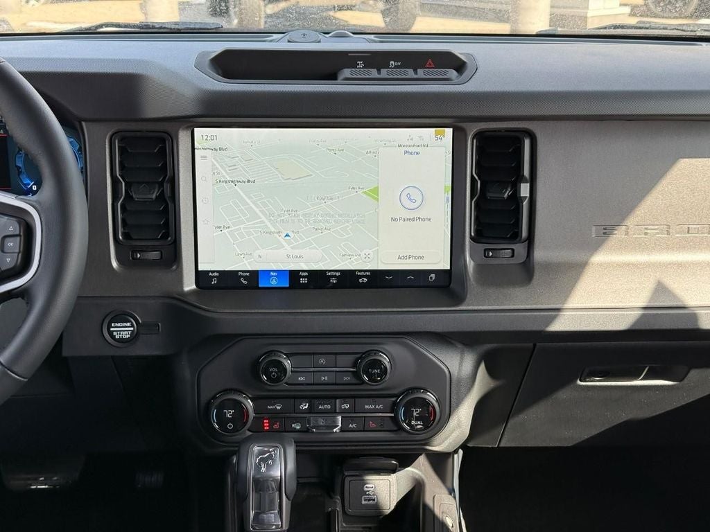 It keeps you comfortable with Auto Climate. Never get into a cold vehicle again with the remote start feature on the vehicle. This 1/2 ton suv warns of approaching vehicles with Cross-Traffic Alert. Heated seats for those cold winter days are included in the vehicle. See what's behind you with the back up camera on this 2025 Ford Bronco . The state of the art park assist system will guide you easily into any spot. This vehicle offers Apple CarPlay for seamless connectivity. The Ford Bronco comes equipped with Android Auto for seamless smartphone integration on the road. The installed navigation system will keep you on the right path. Bluetooth® technology is built into this 2025 Ford Bronco , keeping your hands on the steering wheel and your focus on the road. An off-road package is equipped on this 2025 Ford Bronco . This model is painted with a sleek and sophisticated black color.