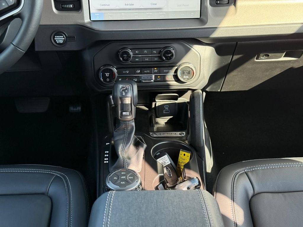 The vehicle's Cross-Traffic Alert: Safeguarding you from unexpected traffic when reversing. The state of the art park assist system will guide you easily into any spot. This 1/2 ton suv has auto-adjust speed for safe following. Protect the Ford Bronco from unwanted accidents with a cutting edge backup camera system. It comes equipped with Android Auto for seamless smartphone integration on the road. You'll never again be lost in a crowded city or a country region with the navigation system on this 1/2 ton suv. An off-road package is installed on it so you are ready for your four-wheeling best. This model features a hands-free Bluetooth® phone system. This model is pure luxury with a heated steering wheel. This Ford Bronco offers Apple CarPlay for seamless connectivity. Never get into a cold vehicle again with the remote start feature on the vehicle. The leather seats in the vehicle are a must for buyers looking for comfort, durability, and style.