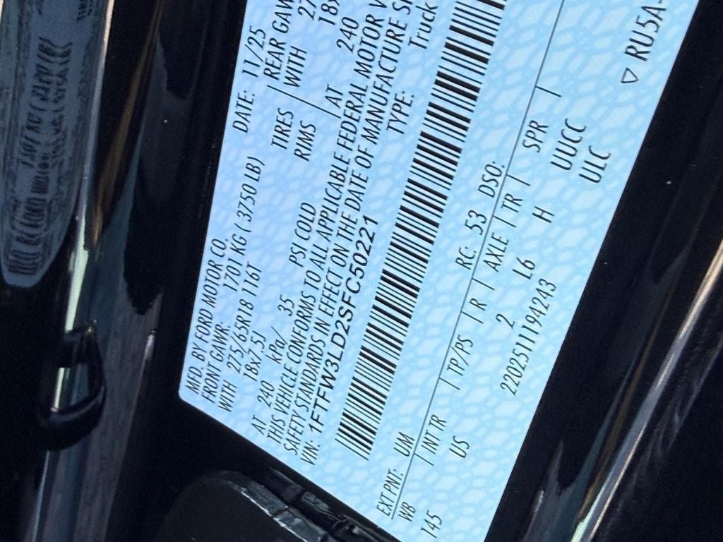 Equipment Group 302A Mid: Chrome Door and Tailgate Handles; Wrapped Steering Wheel; Connected Navigation; Black Painted Grille with Chrome Center Bar; Intelligent Access with Push Button Start; AM/FM Stereo with SiriusXM 360L; 400W Cab and Bed Outlets; Dual-Zone Electronic Automatic Temperature Control; Cloth 40/console/40 Front Seats; Power-Sliding Rear Window; 275/65R18 BSW A/T Tires; Remote Start System with Remote Tailgate Release; Heated Front Seats; 6" Angular Bright Anodized Step Bar; Ford Co-Pilot360 Assist 2.0; Chrome Single-Tip Exhaust; Power Glass Heated Sideview Mirrors. Mobile Office Package: Cloth 40/console/40 Front Seats; Wireless Charging; Partitioned Lockable Rear Storage; Console Worksurface. Electronic Locking with 3.73 Axle Ratio. **Equipment listed is based on original vehicle build and subject to change. Please confirm the accuracy of the included equipment by calling the dealer prior to purchase.**