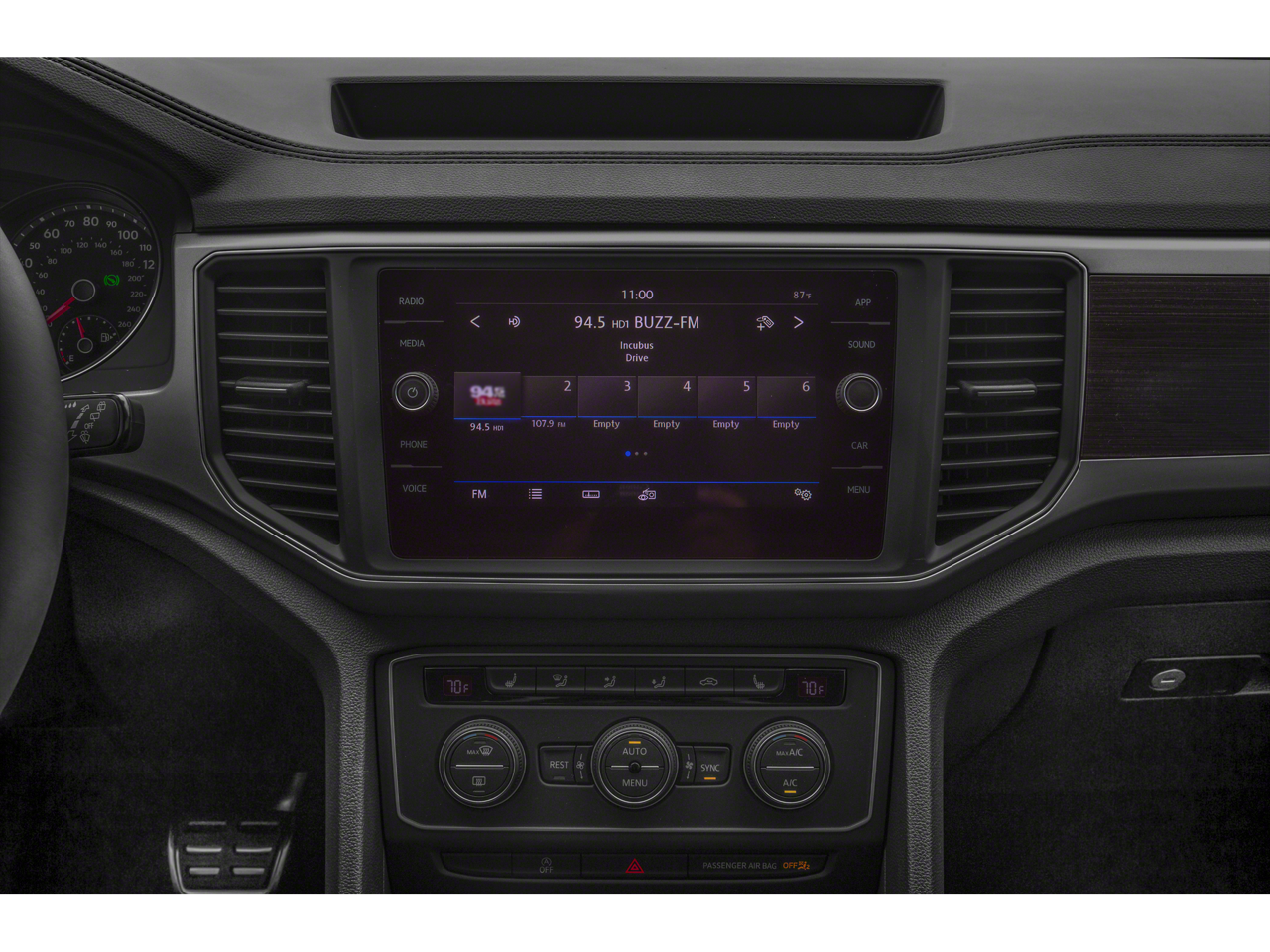 The Volkswagen Atlas enhances safety with a blind spot monitor, alerting drivers to potential dangers in adjacent lanes. It has a clean CARFAX vehicle history report. It offers Android Auto for seamless smartphone integration. The Volkswagen Atlas keeps you comfortable with Auto Climate. Apple CarPlay: Seamless smartphone integration for the vehicle - stay connected and entertained on the go! See what's behind you with the back up camera on this 1/2 ton suv. Start it from inside with remote start. This model has auto-adjust speed for safe following. The leather seats in this Volkswagen Atlas are a must for buyers looking for comfort, durability, and style. This unit features a hands-free Bluetooth® phone system. The vehicle has a V6, 3.6L high output engine. Front wheel drive on this vehicle gives you better traction and better fuel economy. Set the temperature exactly where you are most comfortable in the vehicle. The fan speed and temperature will automatically adjust to maintain your preferred zone climate.